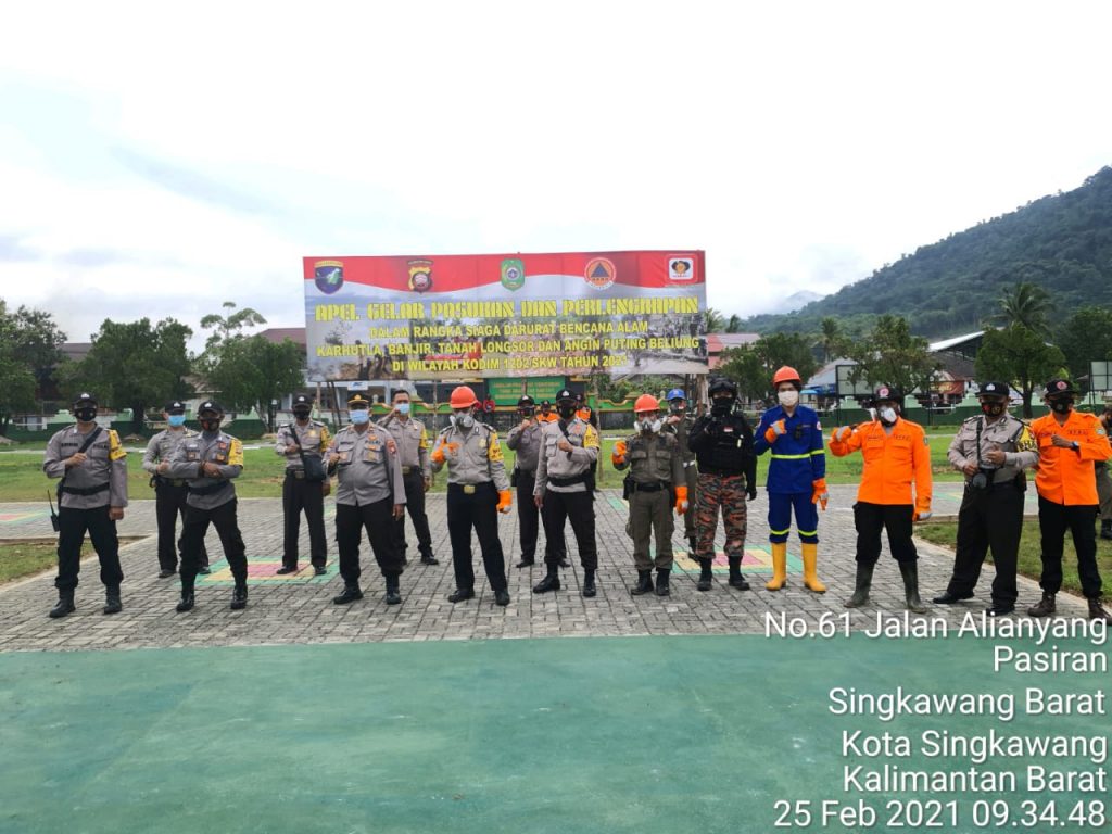 Polda Kalbar Polres Singkawang Humas Polres Singkawang – Pada hari Jum’at ( 26/02/2021 ) pukul 08.00 Wib, telah dilaksanakan kegiatan apel gelar pasukan perlengkapan dalam rangka siaga darurat Bencana Alam, Karhutla, Banjir, Tanah Longsor dan Angin Puting Beliung bertempat di halaman Makodim 1202 Skw Jl. Aliayang Kel. Pasiran Kec. Singkawang Barat Kota Singkawang.
