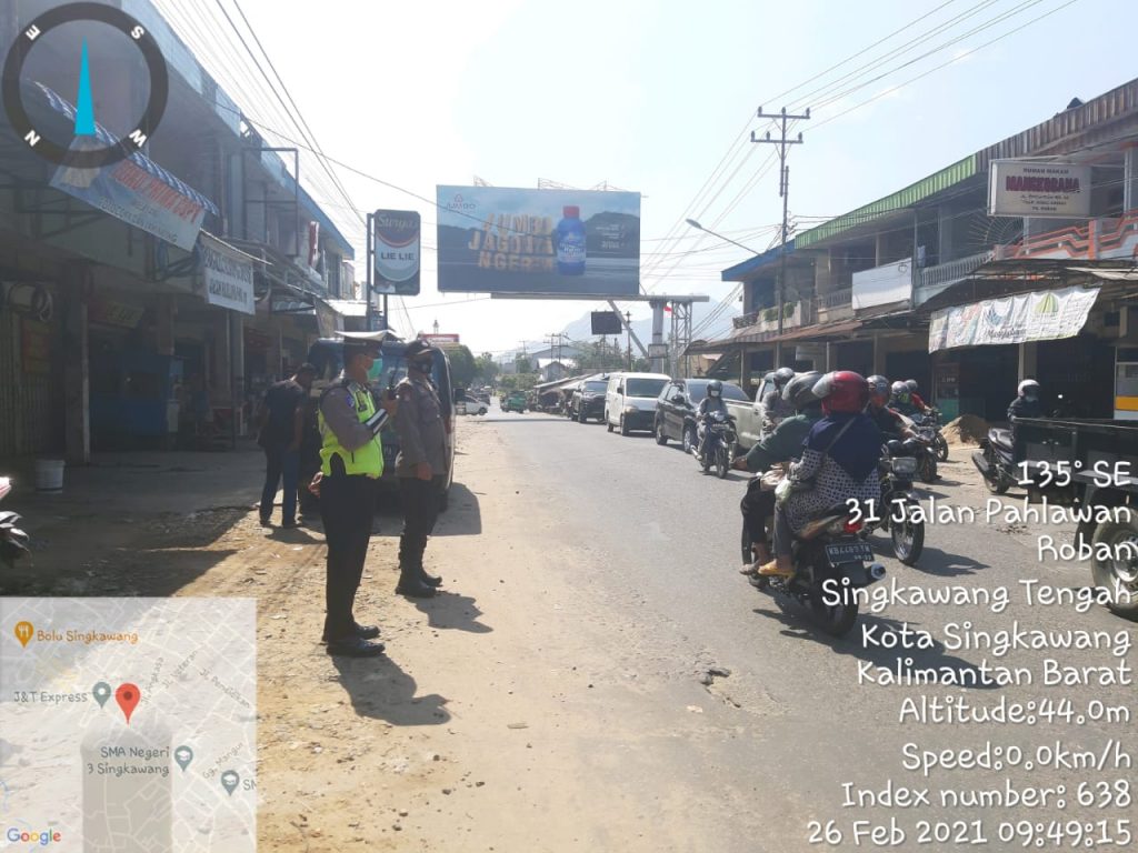 Polres Singkawang- Polsek Singkawang Tengah Personel Polsek Singkawang Tengah dipimpin Bripka Abdul Kadir, SH beserta Personil lainnya telah melaksanakan Pengamanan Strong Point Rekayasa Lalin di perempatan Pasar Roban di Jl. Pahlawan Kelurahan Roban Kecamatan Singkawang Tengah, Sabtu (27-02-2021).