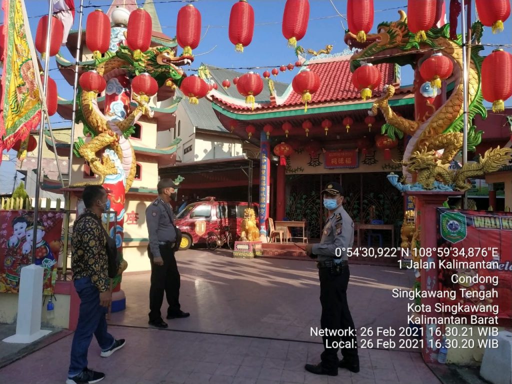 Petugas melaksanakan Patroli di Vihara ( Klenteng ) di wilayah Singkawang Tengah , guna mencegah terjadinya gangguan Keamanan, sambil melaksanakan Patroli Petugas juga memberikan himbauan kepada warga masyarakat.
