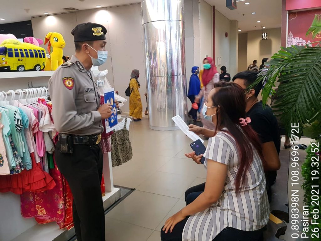 Salah satu kegiatan yang rutin dilaksanakan adalah patroli dan memberikan himbauan di berdasarkan Perwako No. 49 tahun 2020 dan membagikan Masker kepada masyarakat, Jum’at ( 26/02/2021 ), pukul 15.00 Wib s/d 21.00 Wib