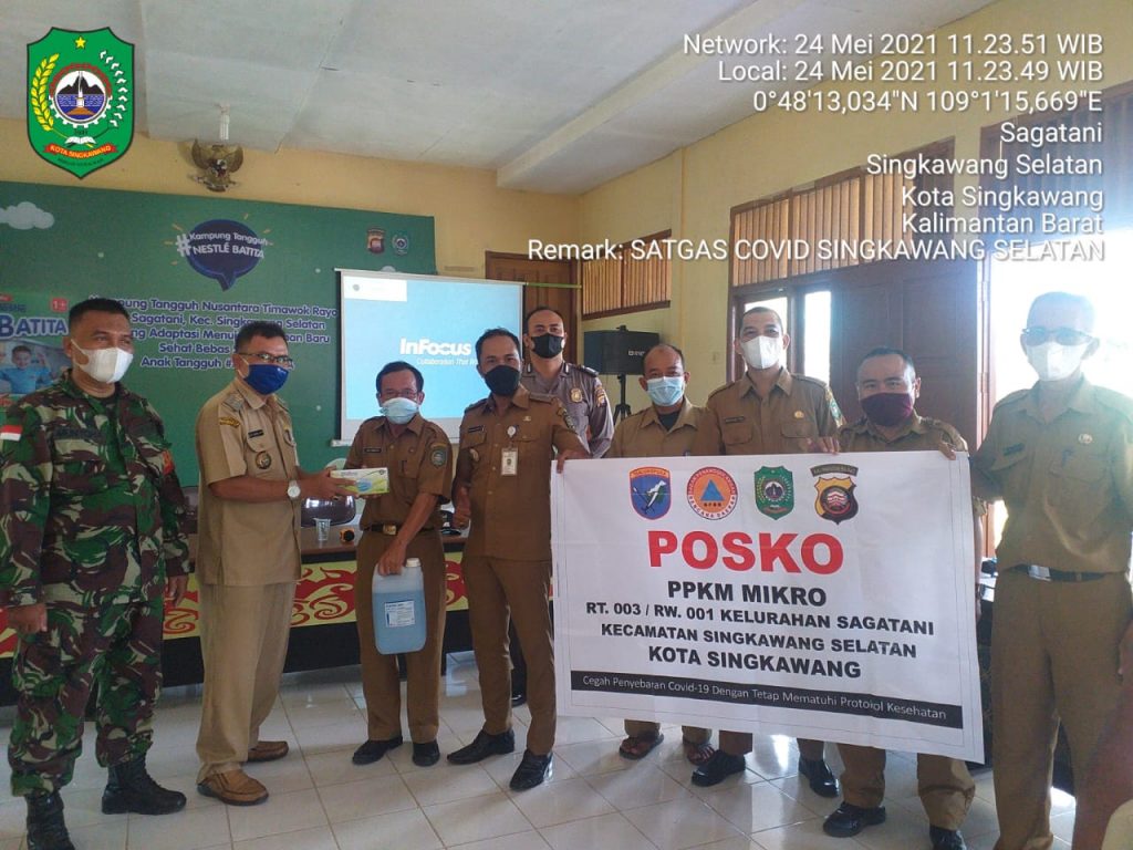 dilaksanakan Penyerahan Simbolis Spanduk/Binner Posko PPKM, Masker dan Hand Sanitizer kepada Ketua RT Kelurahan Sagatani.