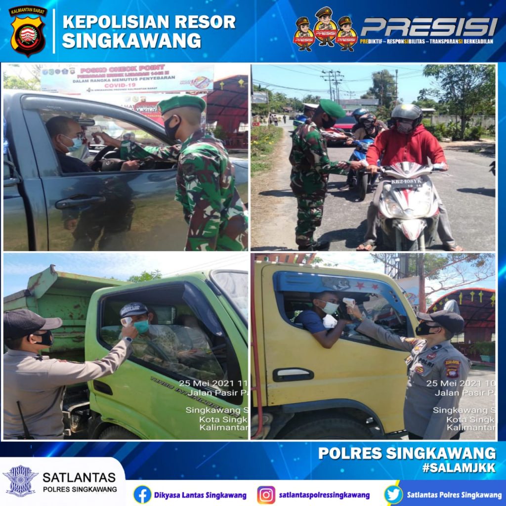 Setiap pelaksanaan tugas dilapangan anggota Polres Singkawang serta instansi terkait yang tergabung dalam kegiatan di Pos Cek Point diwajibkan tetap menerapkan Prokes.