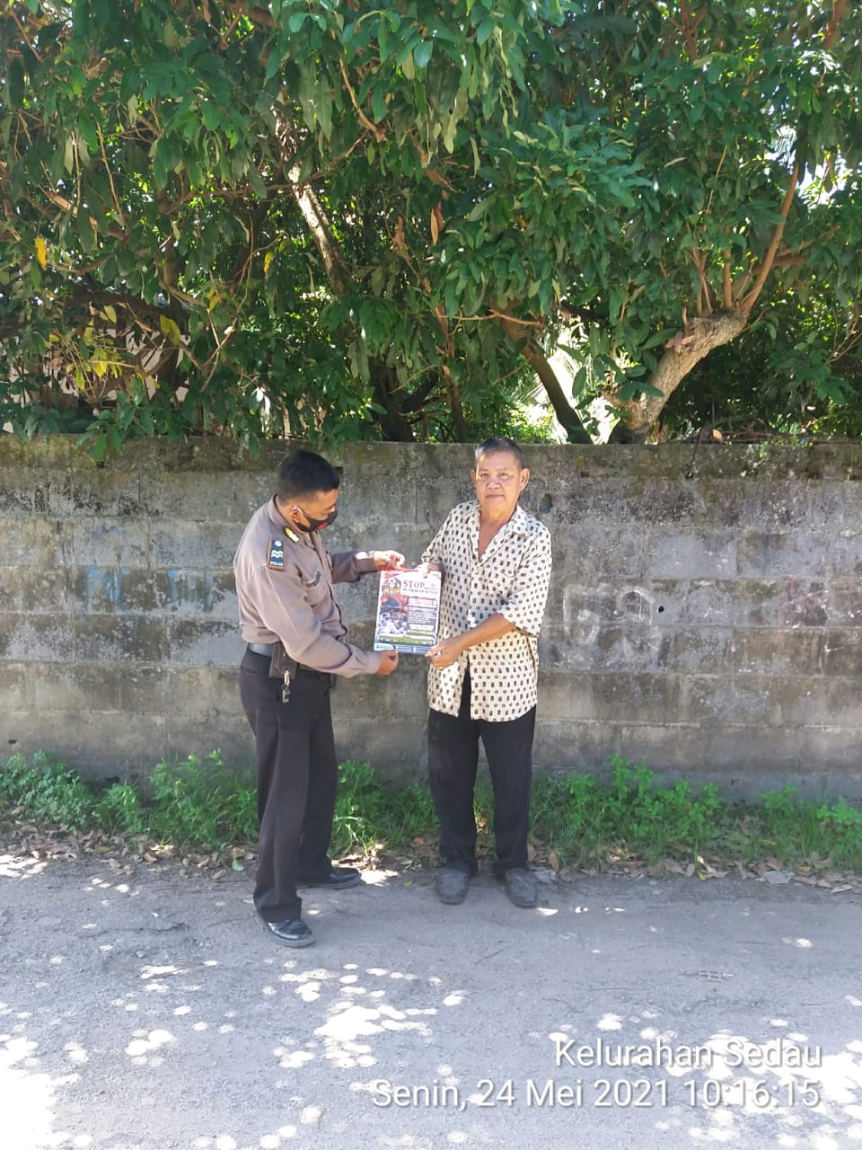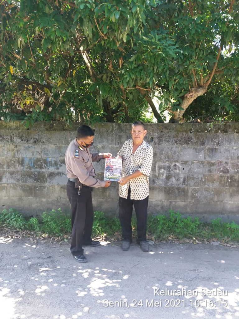 Bhabinkamtibmas Kelurahan Sedau melaksanakan Sosialisasi Karhutla, kegiatan menggunakan binner dan larangan membakar hutan dan lahan serta himbauan kepada masyarakat akan bahaya dari pembakaran hutan dan lahan juga terus dilakukan.