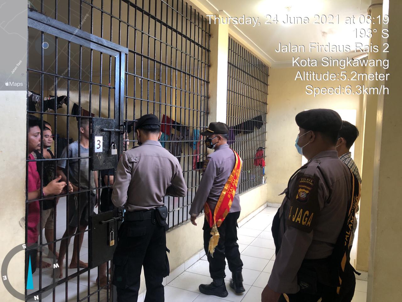 Kanit 3 SPKT IPDA AKHMADI bersama piket pawas dan Anggota Jaga melaksanakan pengecekan ruang tahanan dan kondisi tahanan serta Kondisi Fisik Bangunan Mako dan Panel Lampu / Listrik. Jumlah seluruh Tahanan: 37 Orang dengan kondisi tahanan dalam keadaan sehat dan lengkap. Kondisi CCTV berfungsi, tembok dan teralis disekeliling ruang tahanan bagian dalam dan luar serta plafon dalam keadan baik, tidak ditemukan kerusakan dan gembok dlm keadaan terkunci.