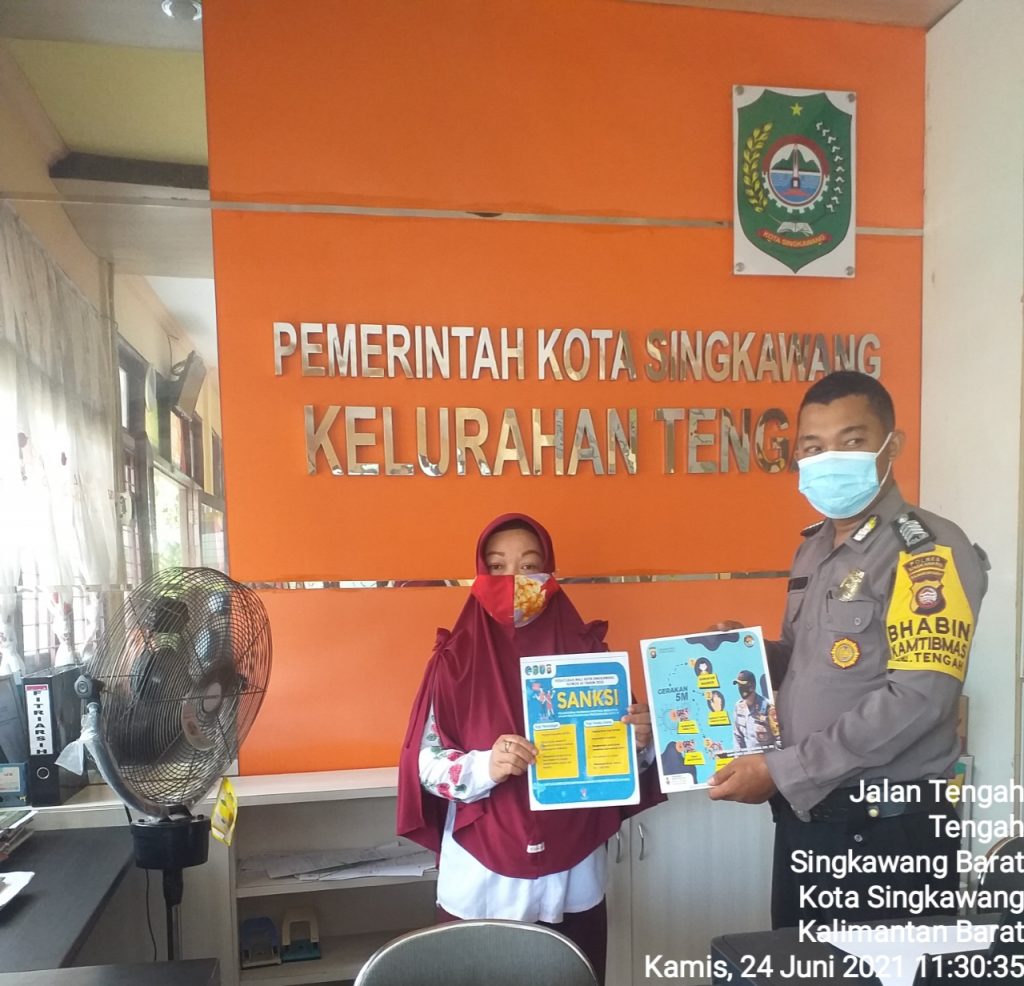 Pada hari Kamis, 24 Juni 2021 Bhabinkamtibmas Kel.Tengah Polsek Singkawang Barat telah melaksanakan Sosialisasi Adaptasi Kebiasaan Baru untuk mencegah dan meminimalisir penyebaran covid 19 kepada warga masyarakat di Kel. Tengah Kec. Singkawang Barat dengan memberikan himbauan yakni :