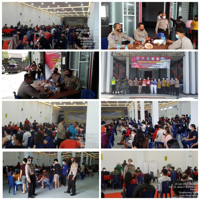 Polres Singkawang Polsek Singkawang Barat Pada hari Kamistanggal 24 Juni 2021 sekira pukul 08.00 Wib s/d 15.30 wib bertempat di Gedung Pavilion 78 Jln. P. Diponegoro Kel. Pasiran Kec. Singkawang Barat Kota Singkawang telah dilaksanakan Kegiatan Vaksinasi Covid 19 Terhadap Masyarakat Kota Singkawang Tahap 1.