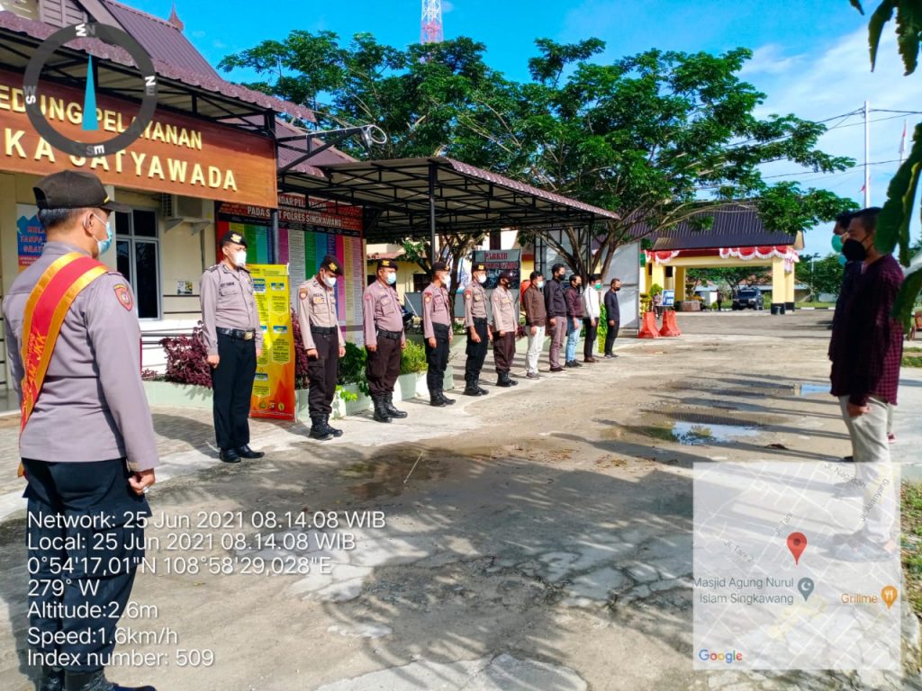 Polda Kalbar Polres Singkawang Satsabhara – Pada hari Jum’at (25/06/2021) anggota Satsabhara Polres Singkawang melaksanakan apel serah terima tugas dan tanggung jawab piket penjagaan mako dan jaga tahanan di Polres Singkawang.