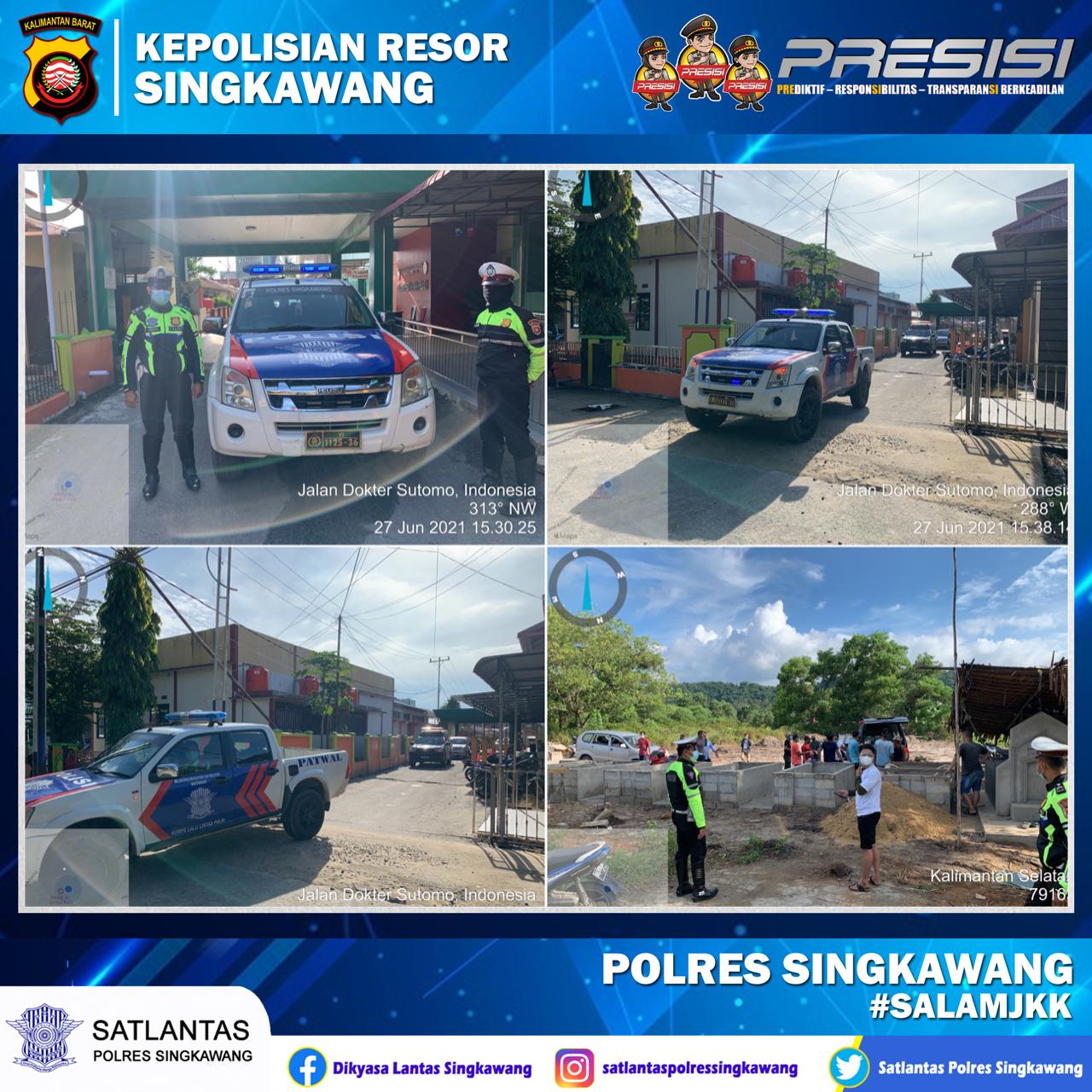 Polda Kalbar Polres Singkawang Humas Polres Singkawang – Pada hari ini Senin ( 28/06/2021 ) pukul 14.30 Wib s/d 16.00 Wib, telah dilaksanakan kegiatan pengawalan jenazah pasien perawatan terkonfirmasi Covid 19 di RSUD Abdul Azis Kel. Pasiran Kecamatan Singkawang Barat, ke Komplek Pemakaman Yayasan Kasih Kurnia Jl. Latsitarda Kel. Sedau Kecamatan Singkawang Selatan, dalam rangka protokol Kesehatan sebagai upaya Pencegahan dan Pengendalian Covid 19 dan keamanan selama dalam pengawalan di wilayah hukum Polres Singkawang.