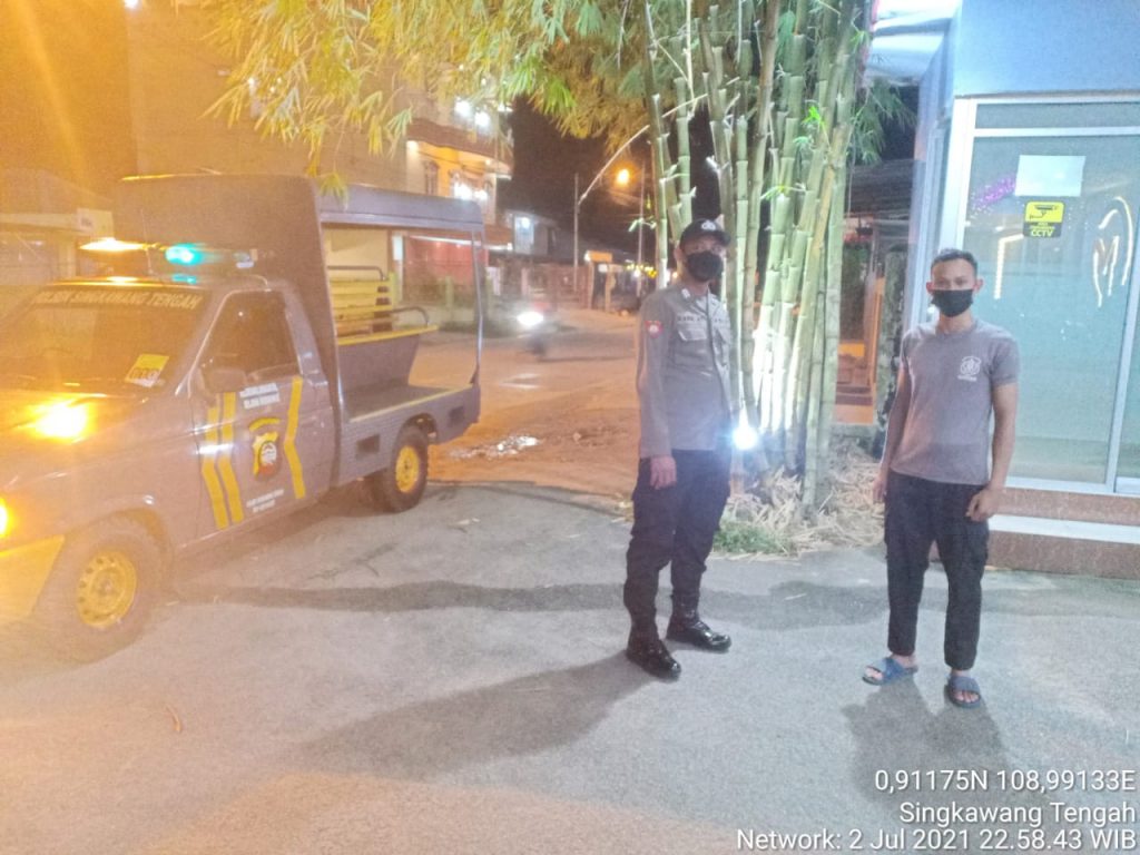 Polres Singkawang – Polsek Singkawang Tengah Patroli 61.A Polsek Singkawang Tengah di pimpin Ka Jaga Bripka U. Arie bersama Personel lainnya pada malam hari melaksanakan kegiatan Patroli Blue Light Patrol di tempat Obyek Vital, Pasar dan Pemukiman penduduk di daerah rawan kriminalitas diwilayah hukum Polsek Singkawang Tengah, sabtu Malam, (03-07-2021).