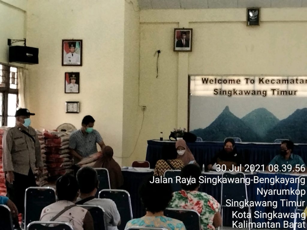 Polsek Singkawang Timur di Pimpin Perwira Pengendali Iptu Sabdoaji laksanakan kegiatan pengamanan pembayaran Bantuan Sosial Tunai (BST) di Kantor Aula Camat Singkawang timur di Jalan raya singkawang-bengkayangKel. Nyarumkop kec. Singkawang timur, Sabtu (31/07/2021).