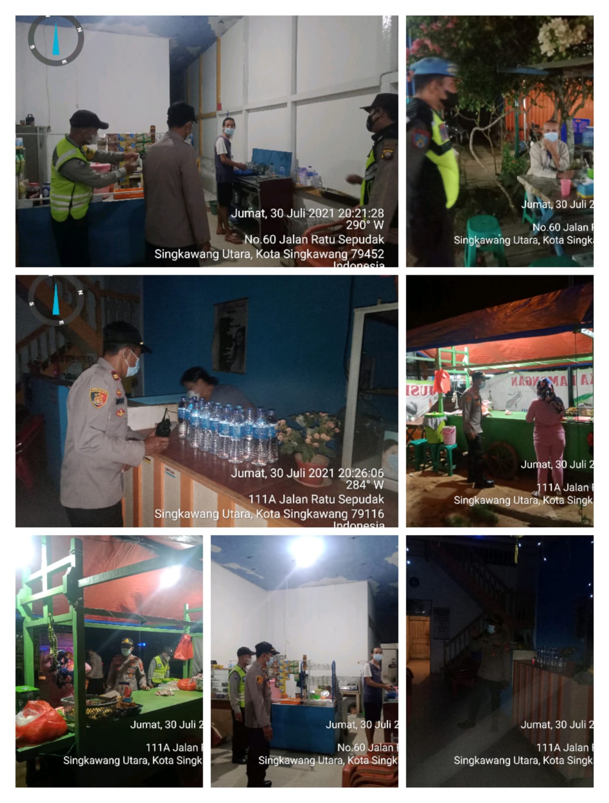 Polda Kalbar Polres Singkawang Humas Polres Singkawang – Pada hari Jum’at ( 30/07/2021 ) pukul 20.00 Wib s/d 21.30 Wib telah dilaksanakan kegiatan Patroli Kontijensi Aman Nusa II – Penanganan Covid – 19 tahun 2021 terpusat di Lokasi Pasar Tradisonal, Cafe/Warkop dan pedagang kaki lima wilayah Singkawang Utara.