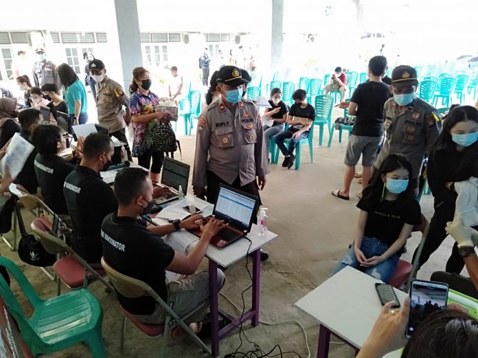 Kegiatan vaksinasi Covid-19 yang diselenggarakan Polres Singkawang masih berlangsung diSMP Swasta Torsina Jl. Stasiun Kel. Pasiran Kec. Singkawang Barat