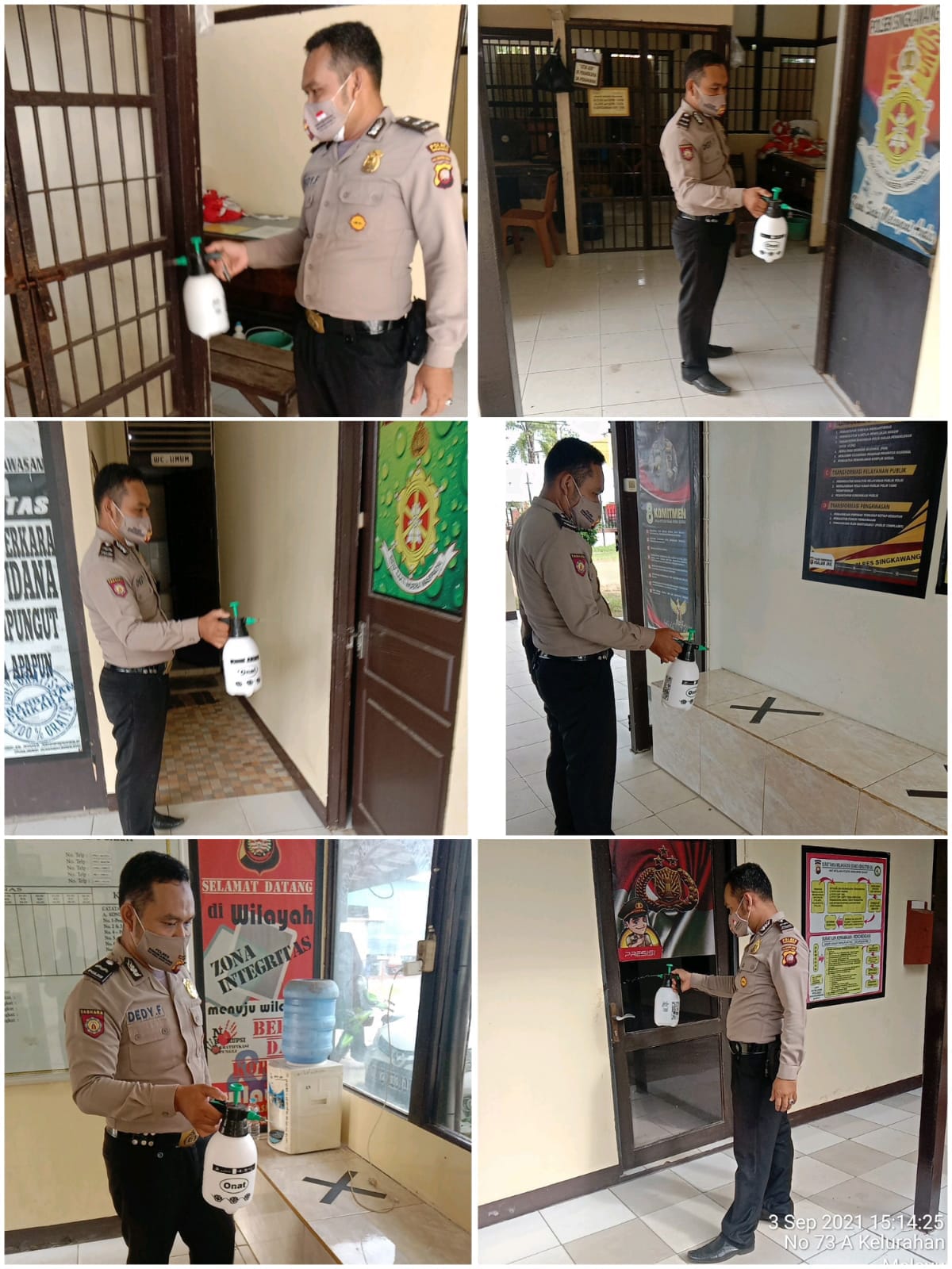 Adapun sasaran ruangan yang dilakukan penyemprot antara lain SBB : Ruang Tunggu Pelayanan Publik, Ruang Penjagaan, Ruang Sabhara, Ruang Kapolsek, Ruang Waka Polsek, Ruang Binmas, Ruang Reskrim, Ruang Tahanan dan disekitarnya, Ruang Sium