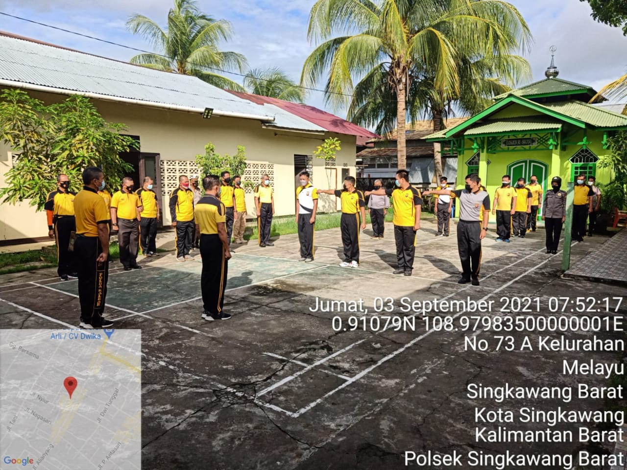 Polres Singkawang Polsek Singkawang Barat pelaksanaan apel Pagi pada hari Jum’at, 03bSeptember 2021 pukul 08.00 wib dipimpin oleh Kompol Charles Sitorus, SH