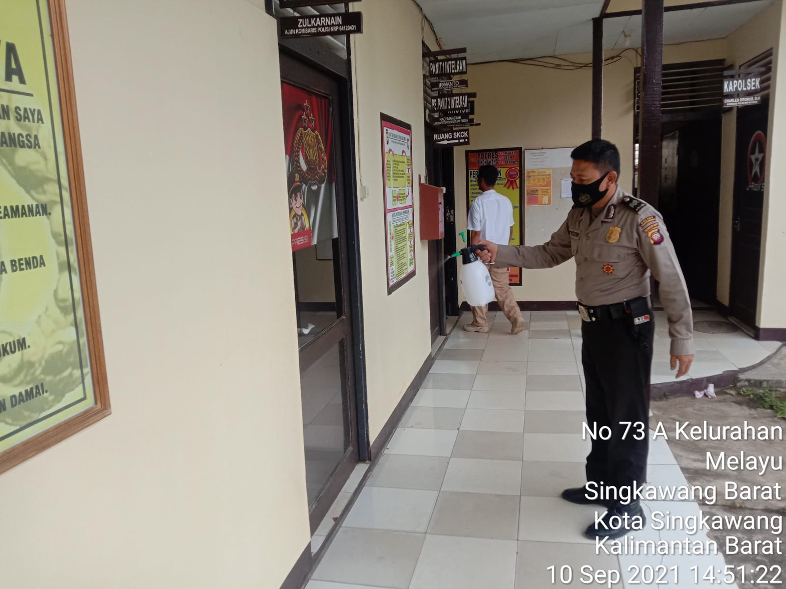Polres Singkawang Polsek Singkawang Barat pada hari Jum’at, 10 September 2021 Pukul 15.00 wib s.d selesai telah di laksanakan kegiatan penyemprotan cairan disinfektan di mako Polsek Singkawang Barat guna pencegahan dan memutus mata rantai penyebaran Virus Covid – 19.