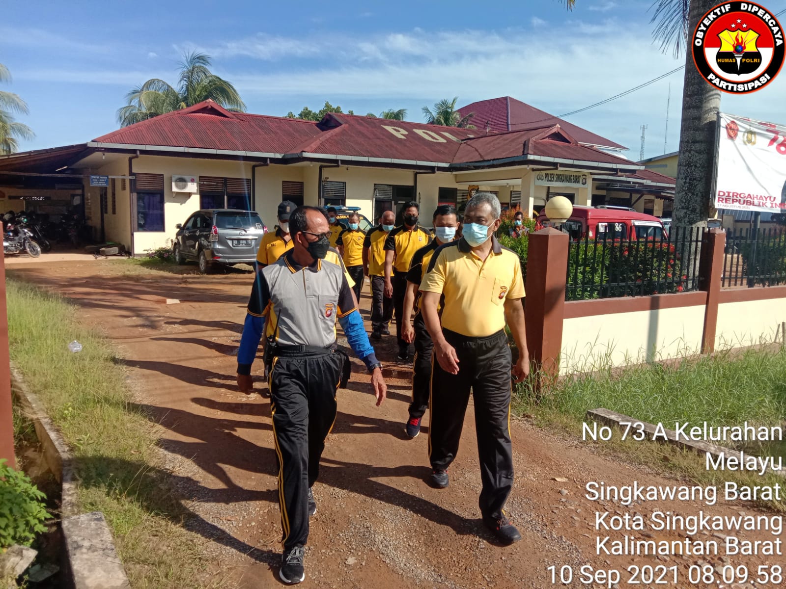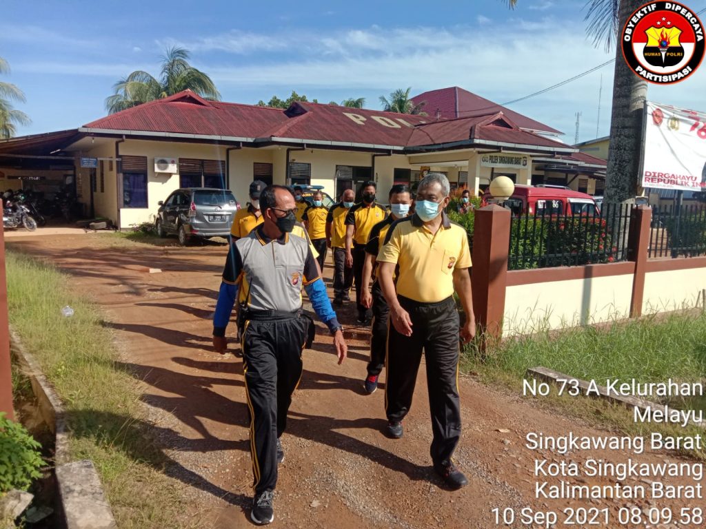 Polres Singkawang Polsek Singkawang Barat dalam rangka menyehatkan personil Polsek Singkawang Barat hari Jum’at,10 September 2021 setelah pelaksanaan apel pagi dilanjutkan olah raga jalan kaki.