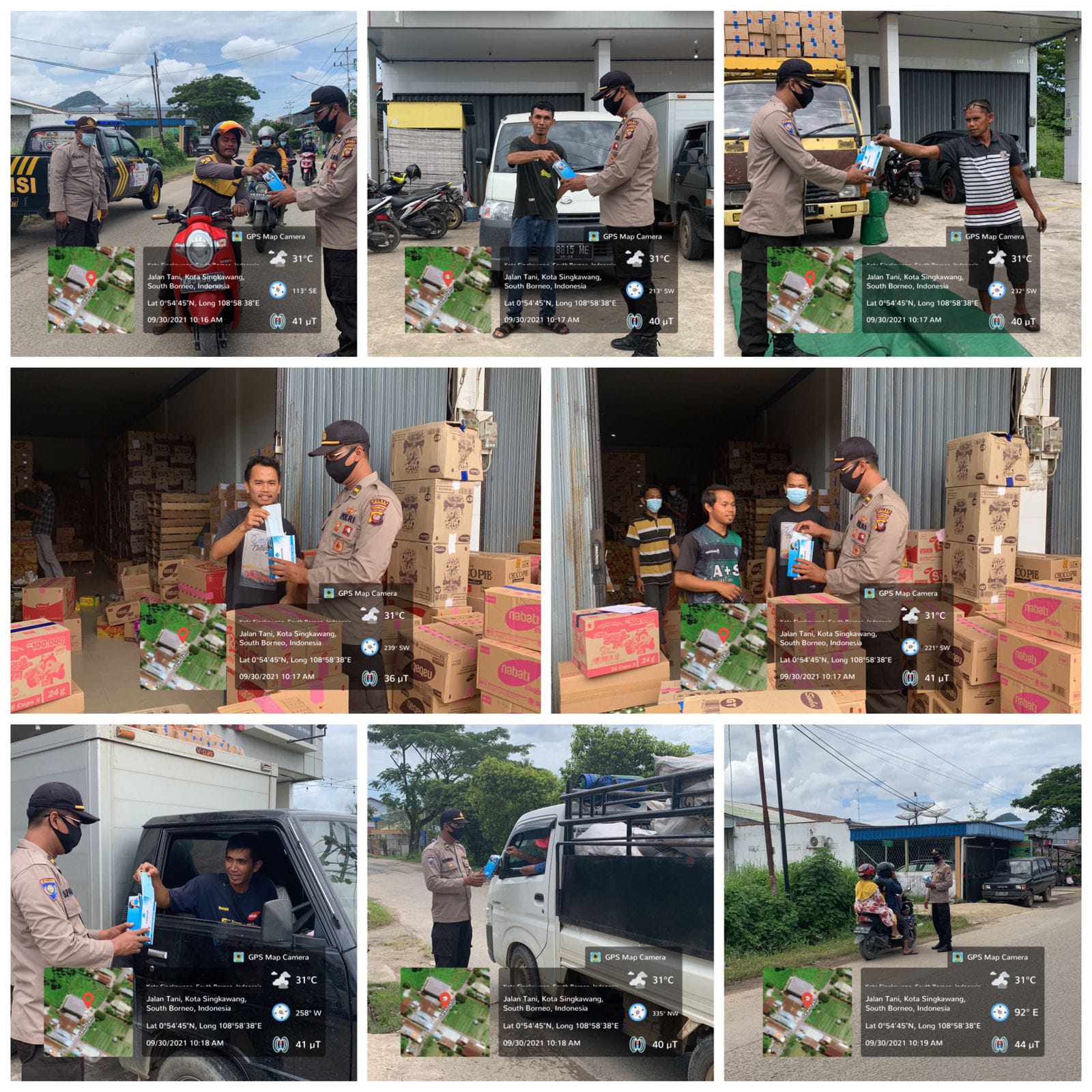 Kapolsek Singkawang Barat Kompol Charles Sitorus, SH melalui Iptu Puji Riyanto beserta 2 pers, Memberikan masker kepada masyarakat, pengunjung Cafe, Warkop dan PKL yg tidak memakai masker, Para pelaku Usaha warkop, Cafe, PKL dapat menerima himbauan untuk mematuhi Prokes