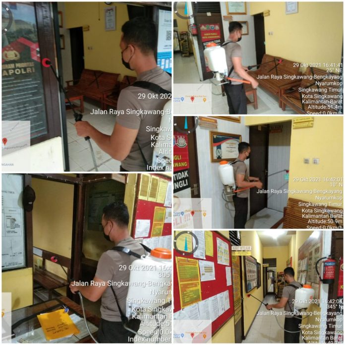 Dalam Penyemprotan cairan disinfektan dilakukan di ruangan-ruangan polsek, mulai dari pintu masuk utama pelayanan ka spk (Sentra Pelayanan Kepolisian ), ruang pelayanan ka spk, ruangan tahanan, ruangan pelayanan SKCK, ruang tamu Kapolsek, sampai dengan ruang pelayanan pemeriksaan unit Reskrim, Kegiatan ini sebagai antisipasi Wabah penyebaran Covid-19 di lingkungan kerja Polri khususnya Polsek Singkawang Timur.
