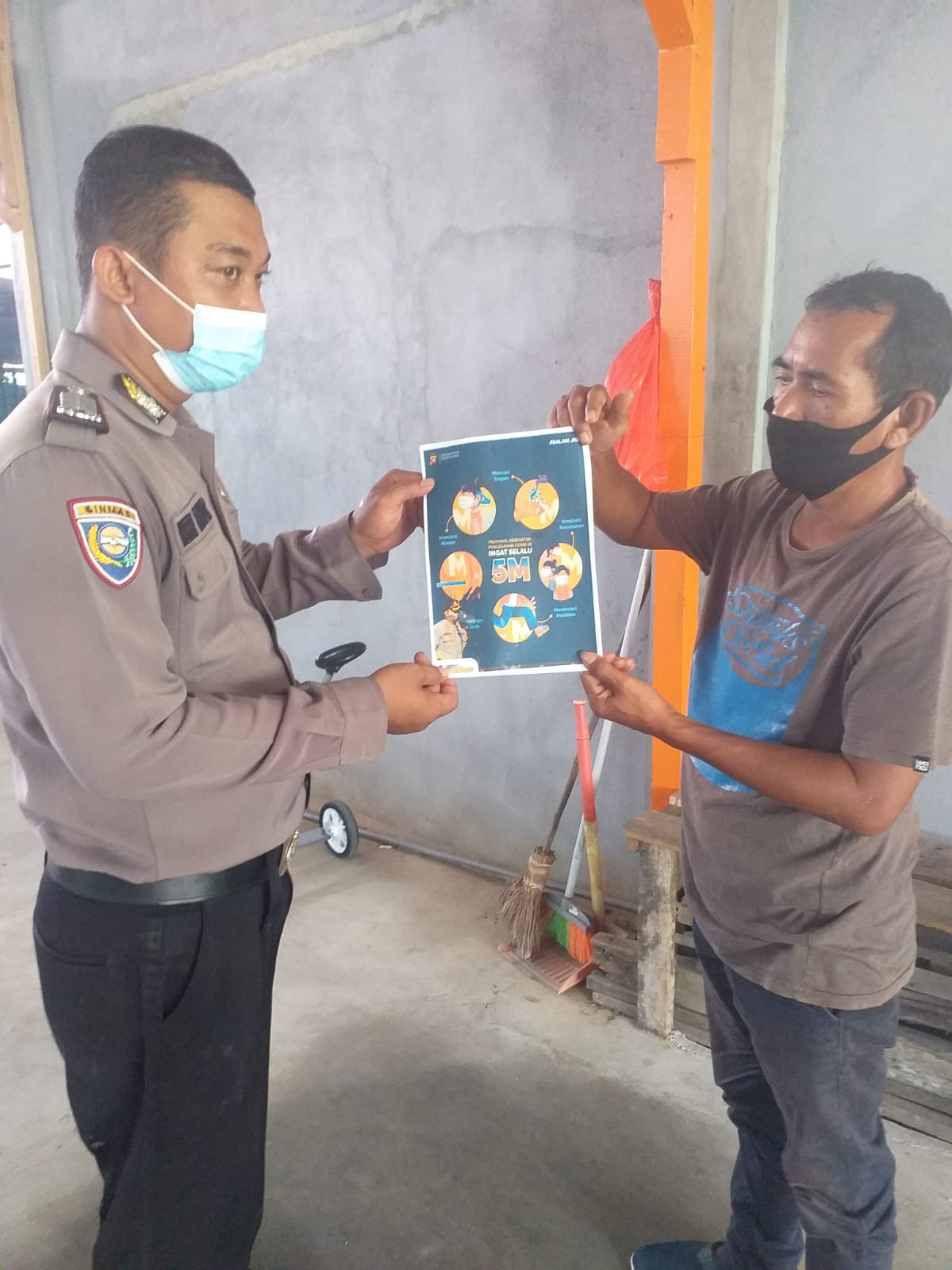 Kapolsek Singkawang Barat Kompol Charles Sitorus, SH melalui Bripka Heru Triyanto sampaikan himbauan kepada warga agar mematuhi protokol kesehatan dengan cara menggunakan masker, mencuci tangan, menjaga jarak, menghindari kerumunan, membatasi keluar rumah, serta mengajak masyarakat untuk Vaksinasi Covid 19