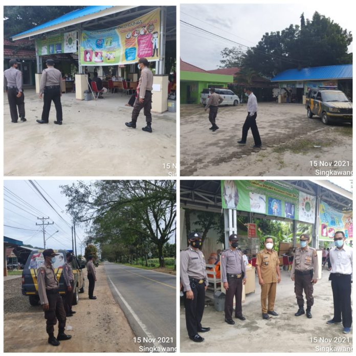Polres Singkawang-Polsek Singkawang Selatan. Agenda rutin dalam menciptakan situasi aman dan kondusif serta pencegahan penyebaran Covid 19, Patroli Polsek Singkawang Selatan Antisipasi Gangguan Kamtibmas ( GK ) dan memantau pelaksanaan Vaksin di Puskesmas Selatan I di Sedai.Senin ( 15/11/2021).