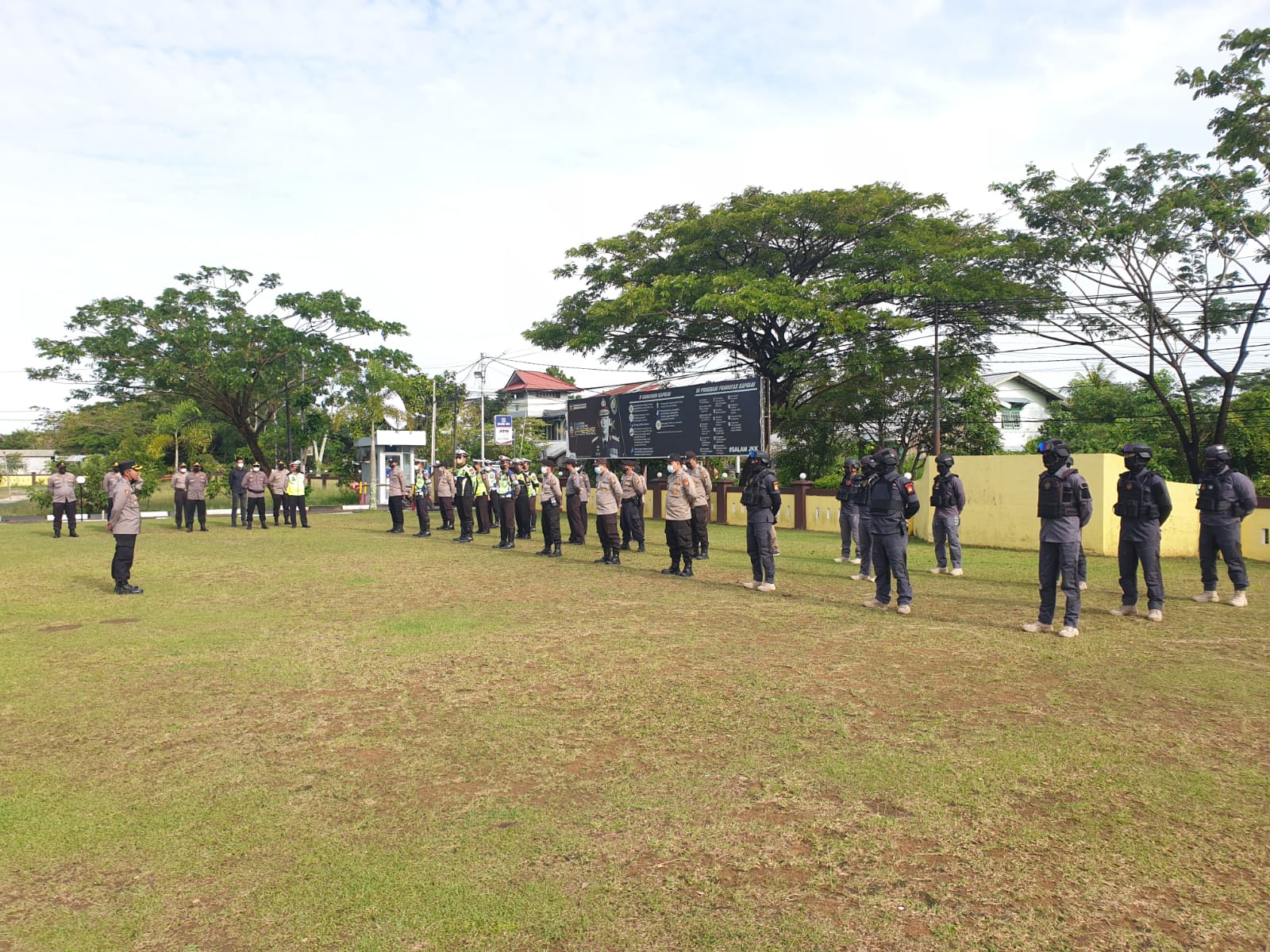 Karendal Ops Kompol Andri Syahroni, S.I.P.,M.M. dalam kegiatan Apel Pagi memberikan arahan kepada Anggota yang terlibat dalam Operasi Lilin Kapuas 2021 di halaman Mapolres Singkawang, Minggu (2/01/2022).