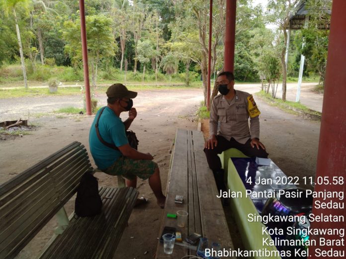 Polda kalbar, Polres Singkawang, Polsek Singkawang Selatan. Bhabinkamtibmas Kelurahan Sedau melaksanakan sambang dan DDS (Door too Door system) dengan warga masyarakat Binaan dalam rangka himbauan agar tetap mematuhi Protokol Kesehatan, mengajak masyarakat untuk ikut vaksin covid 19 Sebagai Upaya Pencegahan Dan Pengendalian Corona Virus Disease 2019/Covid-19 dan Himbauan kamtibmas kepada masyarakat agar kembali menggalakan pos kamling / jaga malam di lingkungannya, yang dilaksanakan pada hari selasa tgl 04 januari 2022 di Kel. Sedau Kec. Singkawang Selatan.