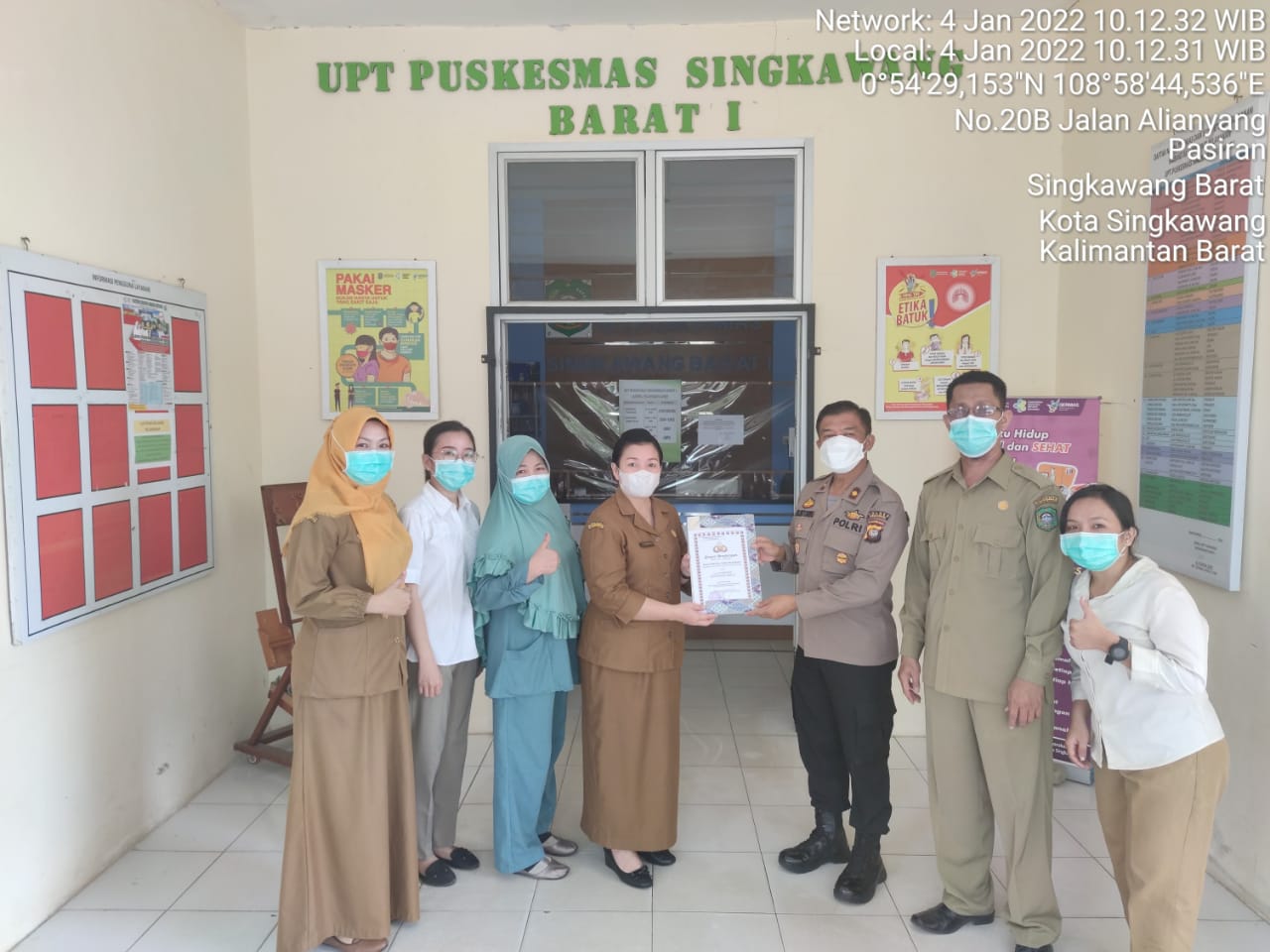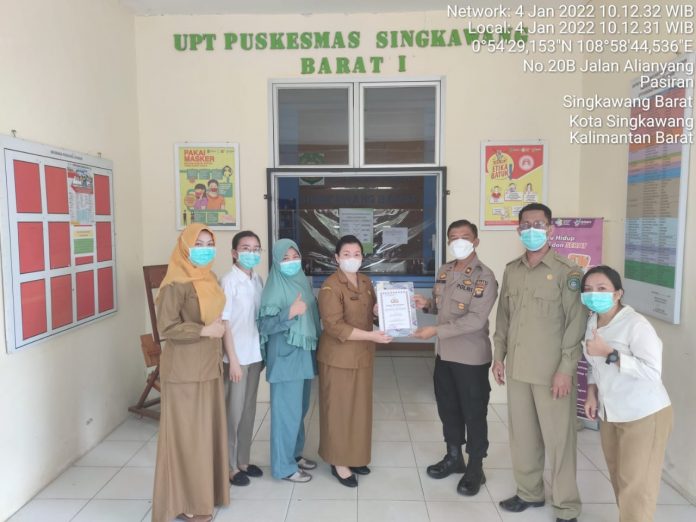 Polda Kalbar Polres Singkawang Humas Polres Singkawang – Bertempat di UPT. Puskesmas Singkawang Barat I dan UPT. Puskesmas Singkawang Barat II, telah dilaksanakan kegiatan penyerahan Piagam Penghargaan kepada UPT. Puskesmas Singkawang Barat I dan UPT. Puskesmas Singkawang Barat II, oleh Kapolsek Singkawang Barat Kompol. Charles Sitorus, S.H, Senin ( 04/01/2022 ) pukul 10.00 wib s/d 11.00 Wib.