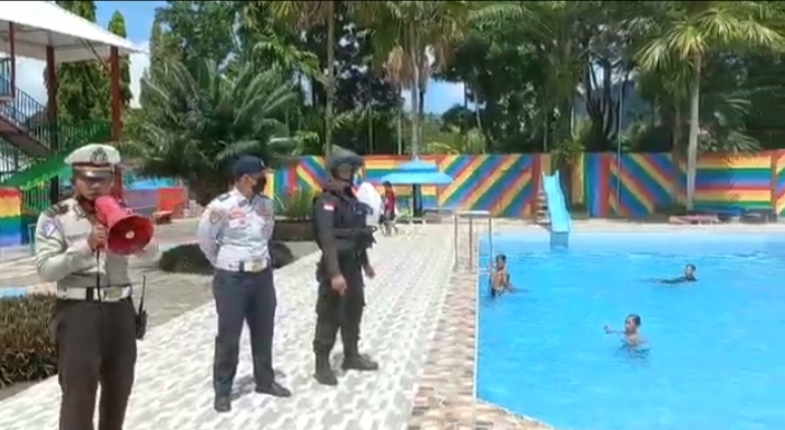 IPDA M.Rudito menyampaikan Himbauan Kamtibmas pada tempat wisata Taman Teratai Singkawang sbb