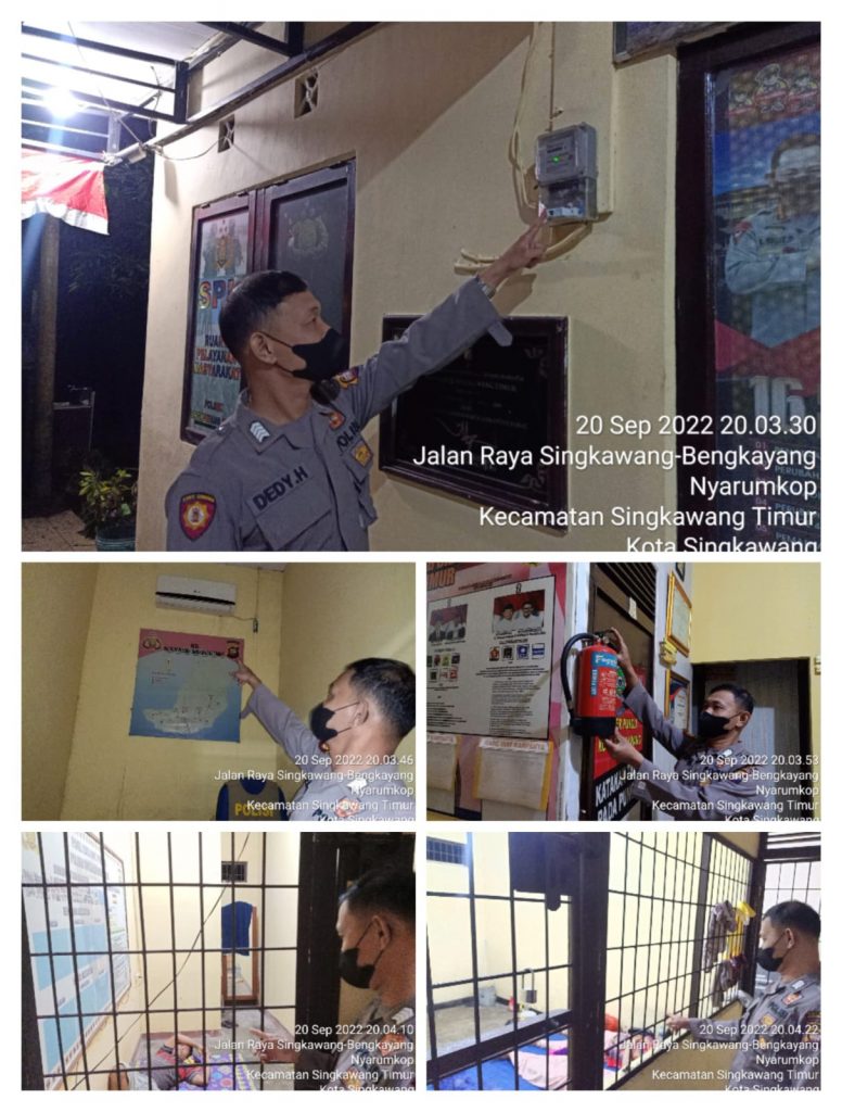 Polda Kalbar Polres Singkawang Polsek Singkawang Timur,: Dalam antisipasi kebakaran di Mako Polsek Singkawang Timur, Ka Spk polsek Singkawang Timur Aipda Hardianto beserta anggota laksanakan pengecekan aliran listrik di setiap instalasi dan pengecekan ruang tahanan di mako Polsek Singkawang timur, selasa (20/09/2022)