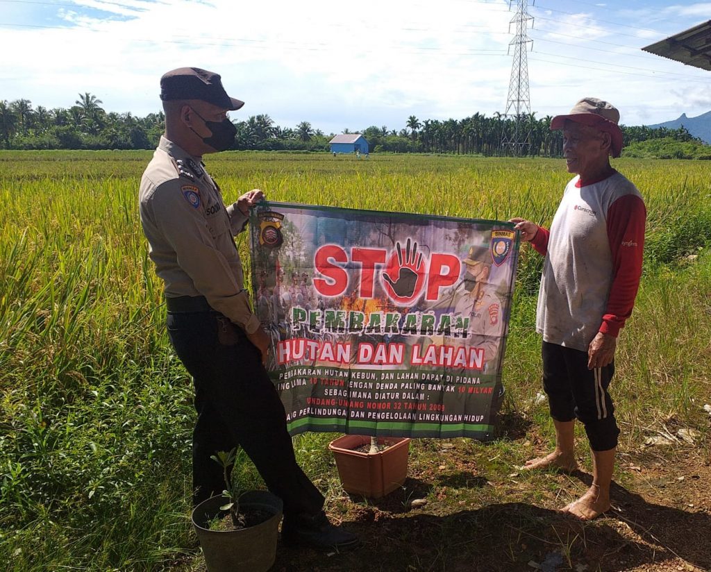 Bhabinkamtibmas juga menekankan kepada petani agar tidak membuka lahan untuk pertanian dengan cara di bakar karena rawan terjadi kebakaran.