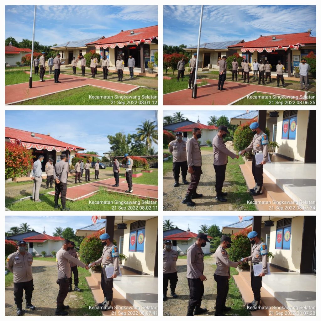 Kegiatan Apel Pagi adalah kewajiban bagi anggota Polri dan ASN Polri secara rutin pada hari Rabu, 21 September 2022 pukul 08.00 Wib di Mako Polsek Singkawang Selatan. Rabu (21/9/2022).