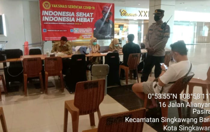 IPDA Subagya Pamungkas Dan Anggota Jaga Monitoring Vaksinasi Covid 19 Di Singkawang Grand Mall
