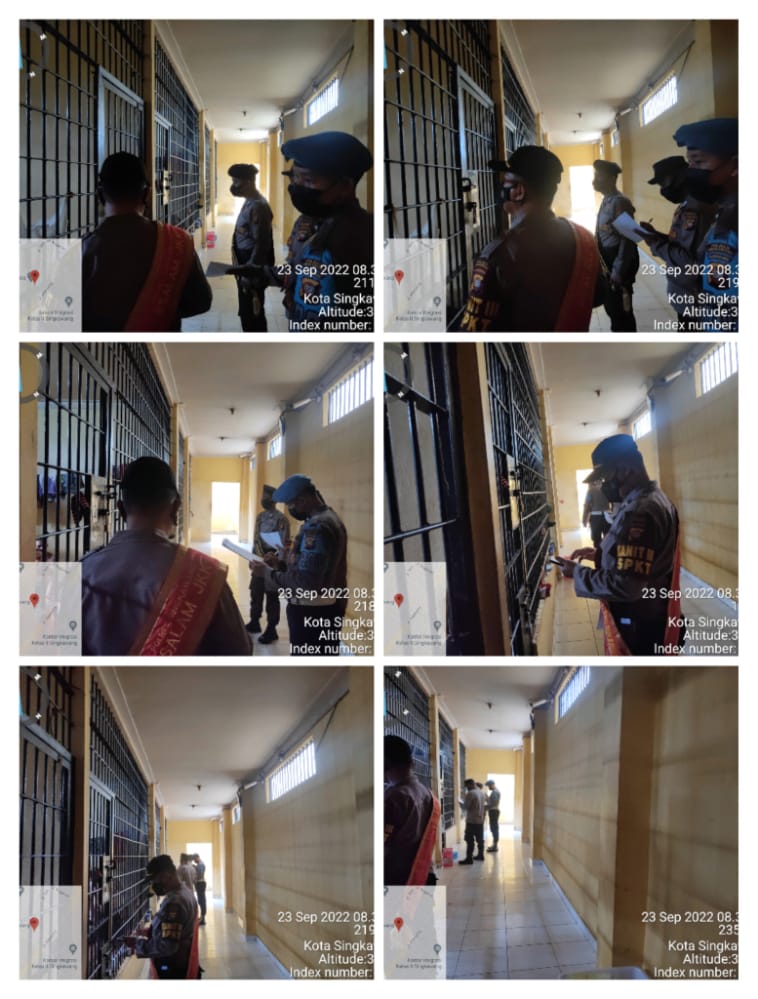 Polda Kalbar Polres Singkawang Satsamapta – Pada hari ini sabtu (23/09/2022) anggota Satsamapta Polres Singkawang melaksanakan pengecekan jumlah tahanan dan kondisi ruang tahanan oleh piket jaga tahanan yang baru bersama piket Provos dan Ka SPKT Polres Singkawang.