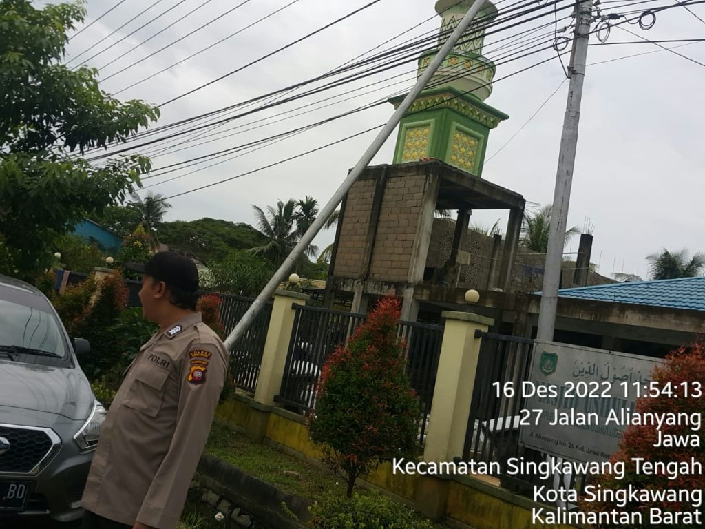Guna menjaga Kamtibmas tetap Kondusif dan aman , polsek Singkawang Tengah jajaran lakukan pengamanan kegiatan Sholat Jumat di beberapa masjid prioritas di daerah hukum polsek Singkawang Tengah. Jum’at (16/12/2022).