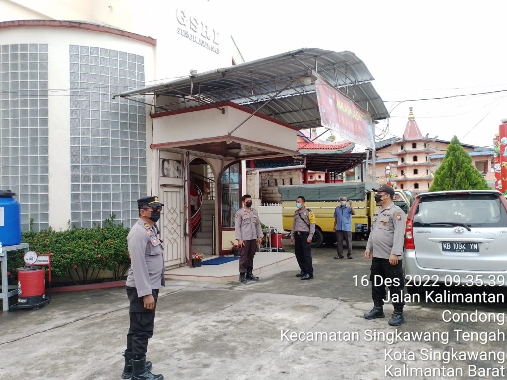 Personel Polsek Singkawang Tengah Polres Singkawang melakukan pengamanan di gereja, menjelang perayaan Natal dan Tahun Baru. Seperti yang dilakukan personel Polsek Singkawang Tengah melakukan pengamanan ibadah perayaan Natal di Gereja GSRI di Jl. Kalimantan Kel. Condong dan Gereja GBI di Jl. manggis Perumnas Kel. Roban Kec.Singkawang Tengah pada Jumat 16 Desember 2022.