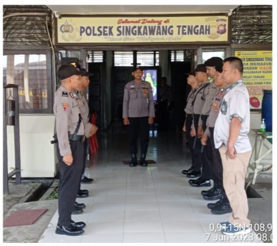 KA SPK Aipda Uray pimpin kegiatan serah terima tugas penjagaan, dalam pergantian naik dan turun piket dilaksanakan selama 1×24 jam , Serah terima dilaksanakan di Mako Polsek Singkawang Tengah di Jl. Jend. Sudirman Gg. RDKS Singkwang Tengah, Rabu pagi (07-06-2023).