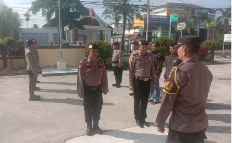 IPDA Mustakim saat serah terima penjagaan memberikan arahan sbb
