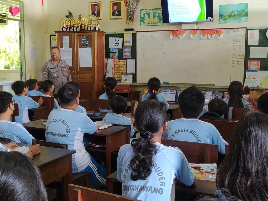 SINGKAWANG, Polda Kalbar- Polres Singkawang, Kasat Binmas Polres Singkawang Akp Supiyanto bersama Personel Sat Binmas Polres Singkawang lakukan Kegiatan Penyuluhan di Sekolah Dasar (SD) Bruder Singkawang yang beralamat di Jalan P. Diponegoro Kel. Pasiran Kec. Singkawang Barat Kota Singkawang, Sabtu (4/11/2023).