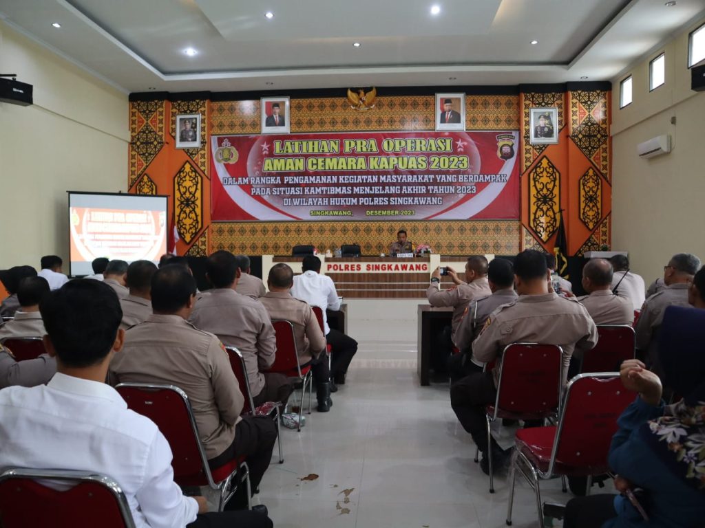 SINGKAWANG, Polda Kalbar- Polres Singkawang, Telah dilaksanakan kegiatan Latihan Pra Operasi Aman Cemara Kapuas 2023 dalam rangka Pengamanan kegiatan masyarakat yang berdampak pada situasi kamtibmas menjelang akhir Tahun 2023 di Wilayah Hukum Polres Singkawang, Kegiatan dilaksanakan di Aula SAR Polres Singkawang yang beralamat di Jl. Firdaus H Rais II No. 98 Kel. Pasiran, Kec. Singkawang Barat, Kota Singkawang, Selasa Sore (19/12/2023).