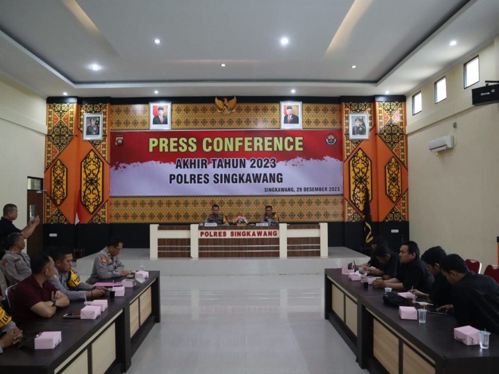SINGKAWANG, Polda Kalbar- Polres Singkawang, Telah dilaksanakan Kegiatan Press Conference Akhir Tahun 2023, kegiatan berlangsung di Aula SAR Polres Singkawang yang beralamat di Jl. Firdaus H. Rais II No. 98 Kel. Pasiran Kec. Singkawang Barat Kota Singkawang, Jum’at (29/12/2023).