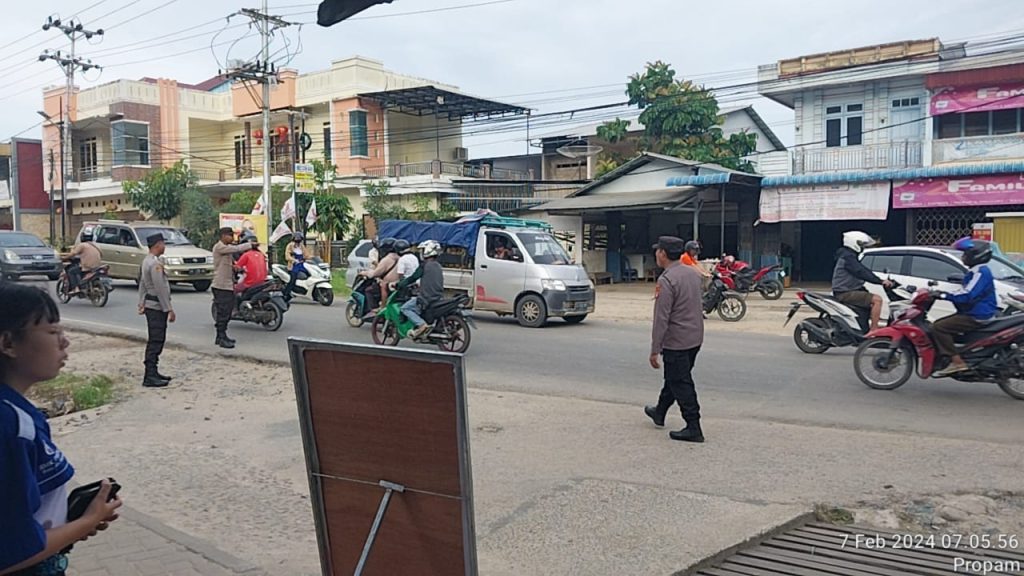 Personil Polsek Singkawang Selatan melaksanakan kegiatan ploting point pagi hari dan penjagaan di daerah ramai aktifitas lalu lintas di Singkawang Selatan. Rabu(07/02/2024).