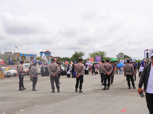 Satgas Operasi Mantap Brata (OMB) Kapuas 2024 Kepolisian Daerah Kalimantan Barat melakukan pengamanan terhadap seluruh rangkaian kampanye Rapat Umum Capres Nomor Urut 1, Anies Baswedan,di Lapangan Terbang Susilo Jalan MT Haryono. Kabupaten Sintang Rabu (07 Februari 2024).