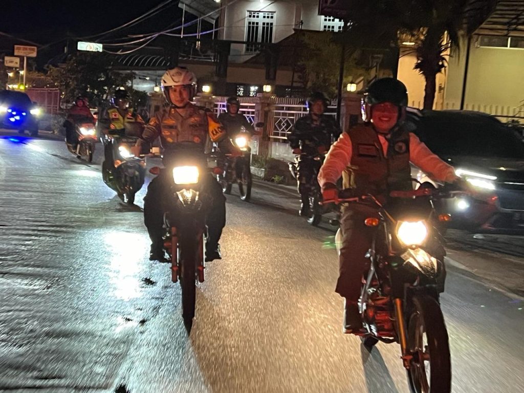SINGKAWANG, Polda Kalbar- Polres Singkawang, Dalam upaya memastikan keamanan dan kelancaran arus mudik Lebaran dan Kegiatan Pengamanan Malam Lebaran, Kapolres Singkawang AKBP Fatchur Rochman, S.I.K., M.I.K. bersama Forkopimda Lakukan Patroli Bersama dengan menggunakan Sepeda Motor, Dengan Mengunjungi Pos Pengamanan dan Pos Pelayanan Lebaran di Kota Singkawang, Selasa Malam (10/4/2024).