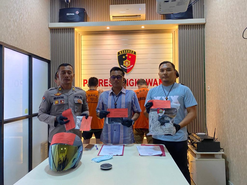 Berdasarkan keterangan saksi – saksi dan olah TKP yang kami laksanakan dan kami juga telah di beckup oleh Tim dari Ditkrimum Polda Kalbar, Perkara ini berhasil kami Ungkap dengan berhasil mengamankan tiga orang tersangka, dengan Pelaku Utama Inisial HA, Selanjutnya ada Inisial AD dan Selanjutnya Inisial BD, Untuk Inisial AD dan BD ini kita amankan di Pemangkat Kab. Sambas,