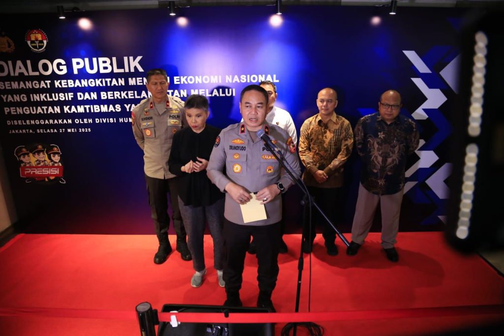 Jakarta – Divisi Humas Polri menggelar kegiatan Dialog Publik bertajuk “Semangat Kebangkitan Menuju Ekonomi Nasional yang Inklusif dan Berkelanjutan Melalui Penguatan Kamtibmas yang Kondusif”, Selasa (27/5). Kegiatan ini menjadi wadah diskusi antara Polri, akademisi, dan mahasiswa dalam membangun kesadaran bersama mengenai pentingnya stabilitas keamanan dalam mendukung pertumbuhan ekonomi nasional yang inklusif dan berkelanjutan.