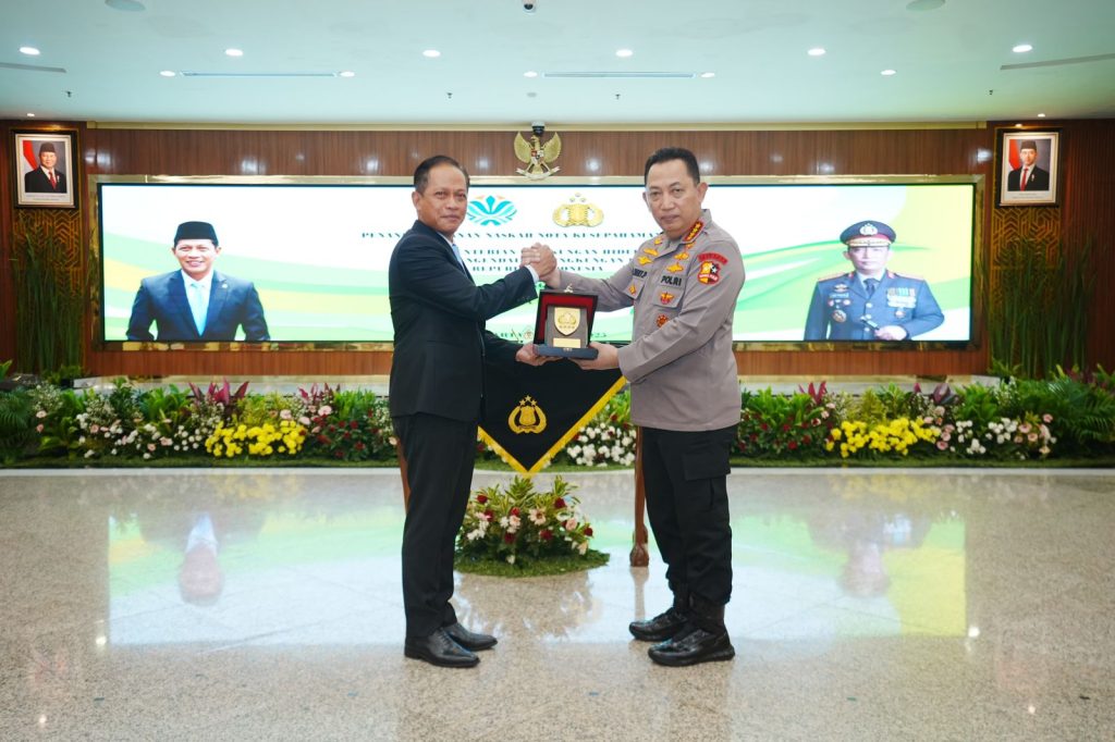 JAKARTA – Kapolri Jenderal Polisi Listyo Sigit Prabowo dan Menteri Lingkungan Hidup dan Kehutanan (LHK), Hanif Faisol Nurofiq, menandatangani nota kesepahaman atau Memorandum of Understanding (MoU) terkait penanganan kualitas lingkungan hidup.