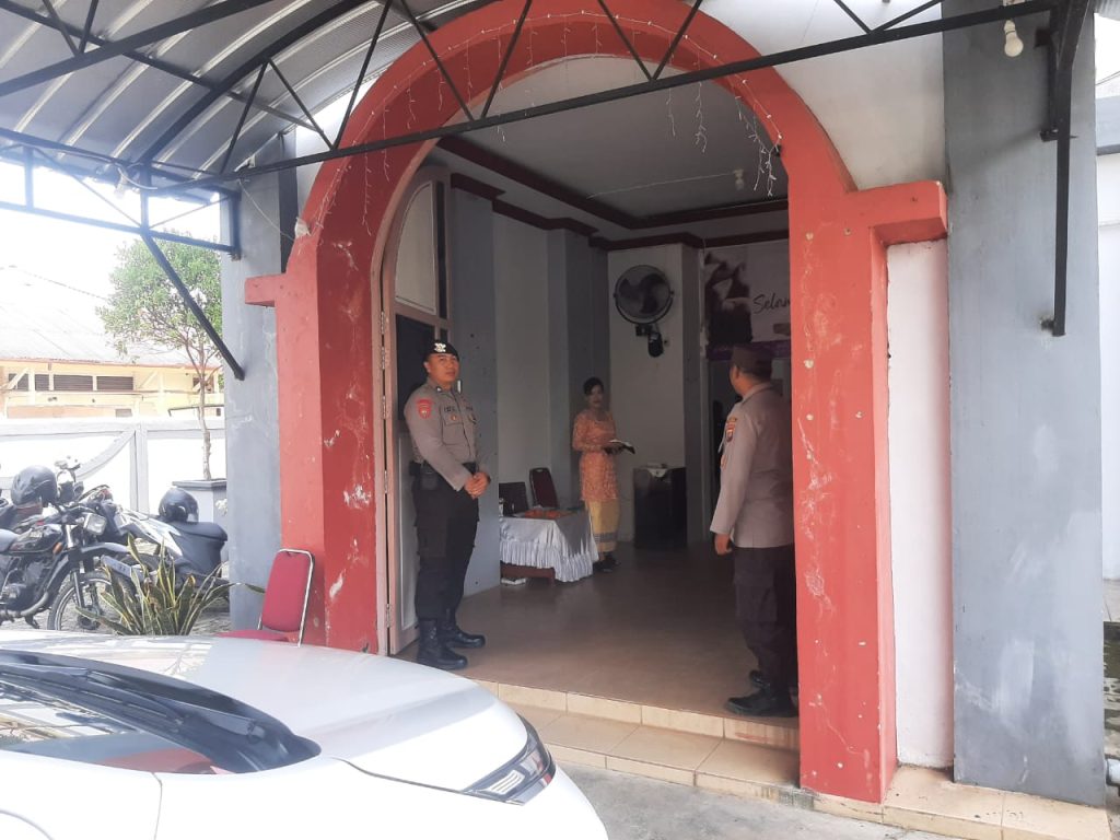 Untuk memastikan pengamanan optimal, Polres Singkawang menurunkan sejumlah personel di lokasi, Kegiatan Pengamanan ini dipimpin oleh AKP Hermanto selaku Perwira Pengendali (Padal), Bersama anggota Mereka bertugas menjaga ketertiban, mengatur arus lalu lintas, serta mengawasi area sekitar gereja.