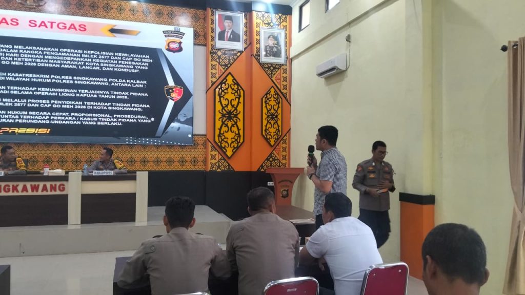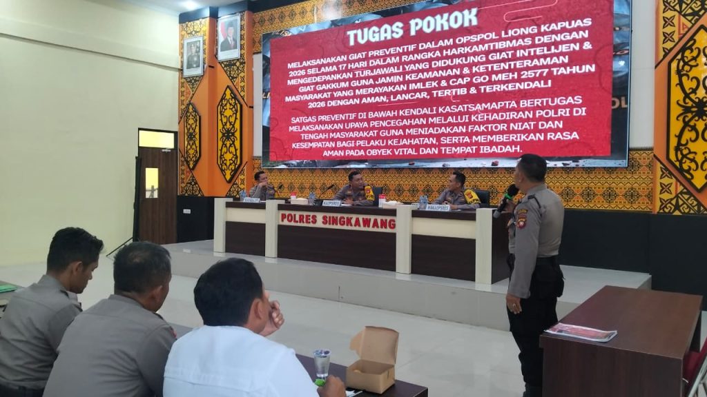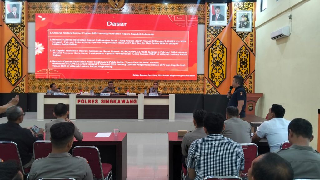 SINGKAWANG – Polda Kalbar- Polres Singkawang, Dalam rangka memastikan perayaan Hari Raya Imlek 2577 dan Cap Go Meh 2026 berjalan aman dan kondusif, Polres Singkawang menggelar Latihan Pra Operasi (Lat Pra Ops) Liong Kapuas 2026 pada Jumat (13/1/2026) pukul 13.30 WIB di Aula Sarja Arya Racana Polres Singkawang. Kegiatan ini menjadi langkah awal dalam menyatukan persepsi, strategi, serta kesiapan seluruh personel sebelum pelaksanaan operasi pengamanan dimulai.