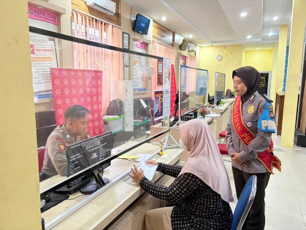 SINGKAWANG, Polda Kalbar – Polres Singkawang, Kehadiran Polisi Wanita (Polwan) di Sentra Pelayanan Kepolisian Terpadu (SPKT) Polres Singkawang kembali menunjukkan komitmen Polri dalam memberikan pelayanan terbaik kepada masyarakat. Pada Selasa, 28 April 2026, sejak pukul 08.30 hingga 14.30 WIB, para Polwan dengan penuh dedikasi melaksanakan tugas pelayanan di SPKT Polres Singkawang.